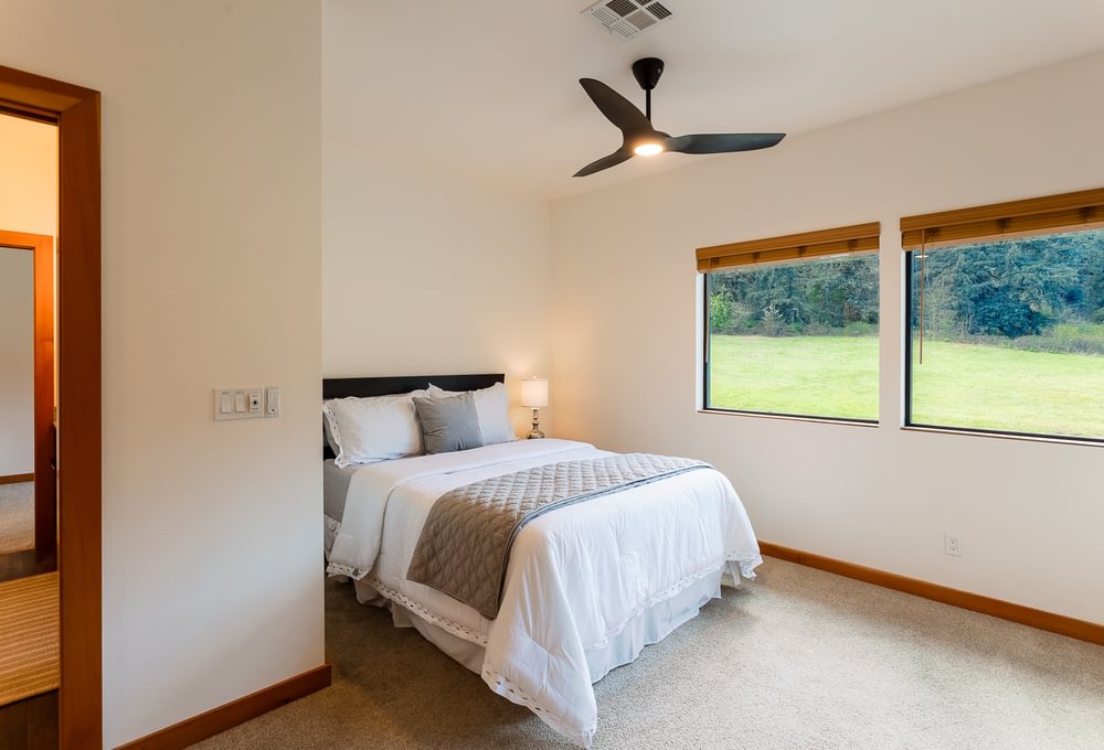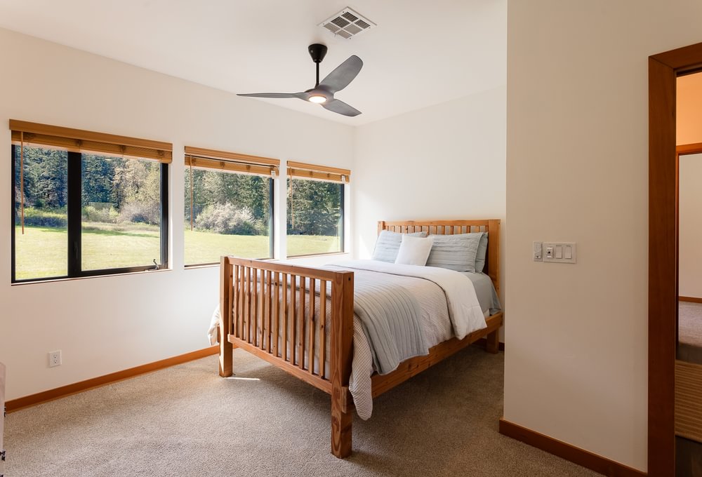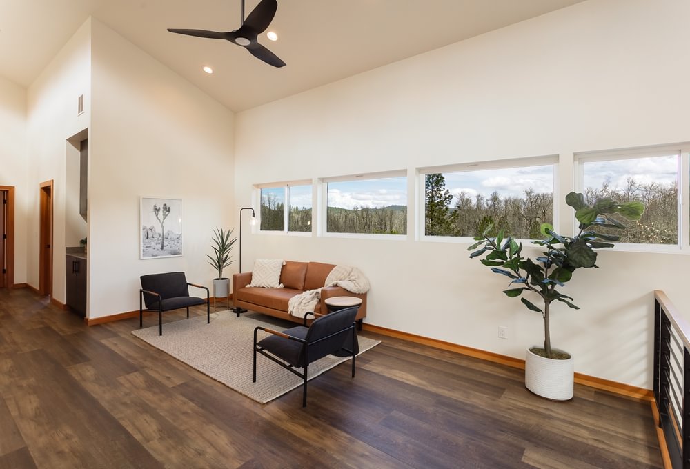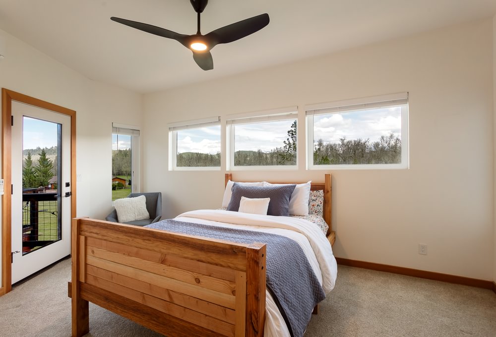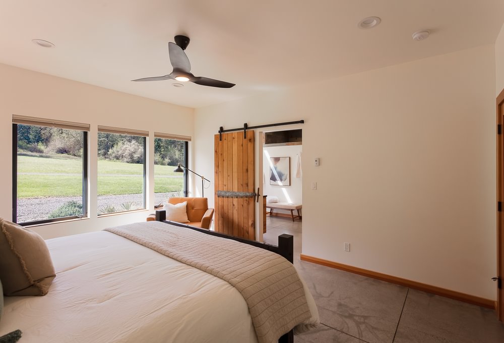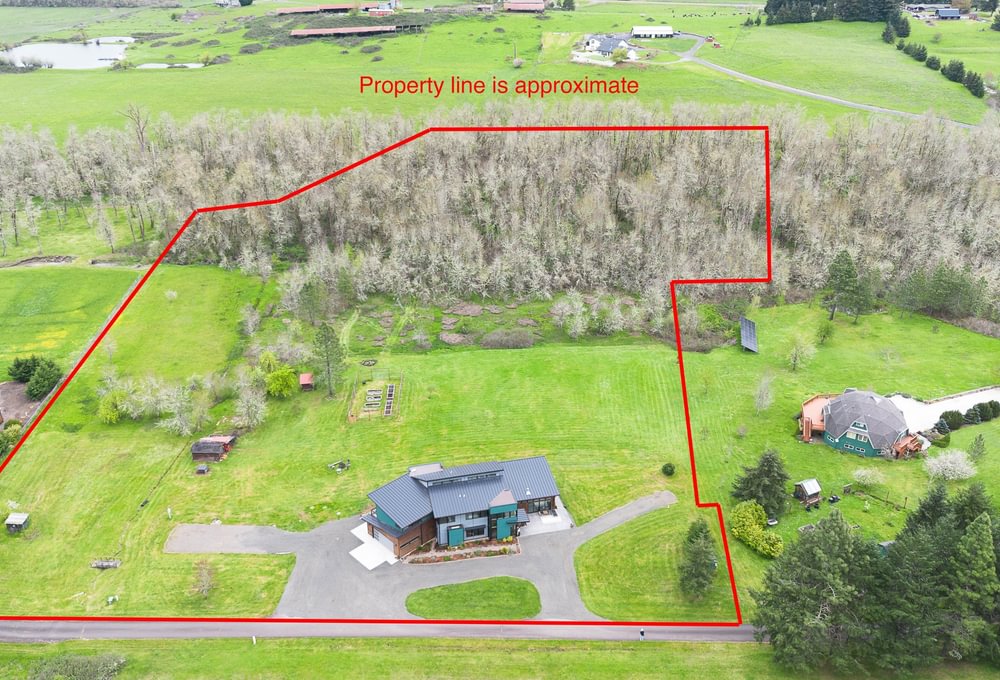 Modern timber-frame home on ±10 acres, approx. 6 miles from Eugene, on a private dead-end road with views and privacy. Approx. 3,760 sf with an open floor plan and great room centered around a large kitchen island—ideal for entertaining. Abundant windows and sliding doors open to front and back decks for year-round natural light. Radiant-heated floors throughout; main level concrete floors provide comfortable winter warmth. Kitchen includes hickory cabinetry, granite countertops, gas cooktop and oven, and a walk-in pantry. Great room includes exposed wood beams/wood ceilings and a wood stove. Primary suite offers a walk-in closet and walk-in tile shower. Main level also includes a laundry/utility room with built-in lockers and a small office space near the attached garage. Upstairs: three bedrooms, a Jack-and-Jill bath (tub/shower), a large landing area, and a separate bonus room. Guest bedroom includes alternate stair access. Bonus room provides flexible space and includes French doors to a back patio with property views, plus alternate access stairs. Tall ceilings, ceiling fans, and generous windows throughout. Custom metal roof. RV parking and room for additional vehicles/toys. The property has previously had an approved building permit for an ADU and a shop. Enjoy time in the gardening or start your own farm. This is a once in a lifetime spectacular home and property! Shown by appointment only. Listing agent is also seller.